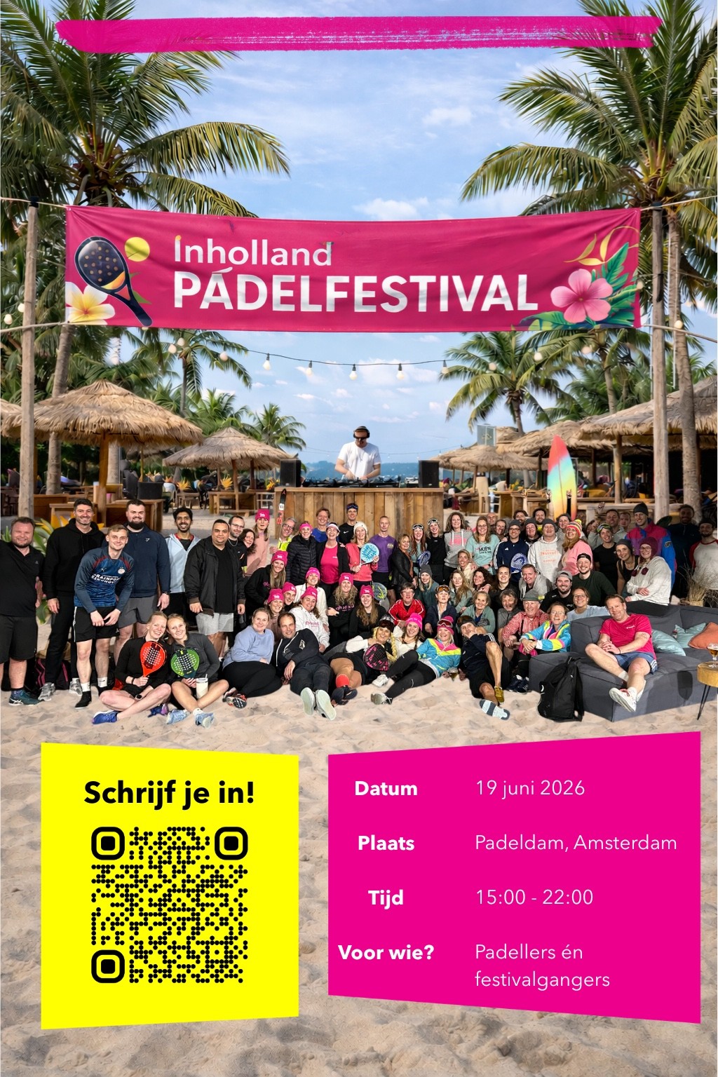 Op vrijdag 19 juni is het tijd voor energie, sportiviteit en gezelligheid tijdens het Inholland Padel Festival bij Padeldam!